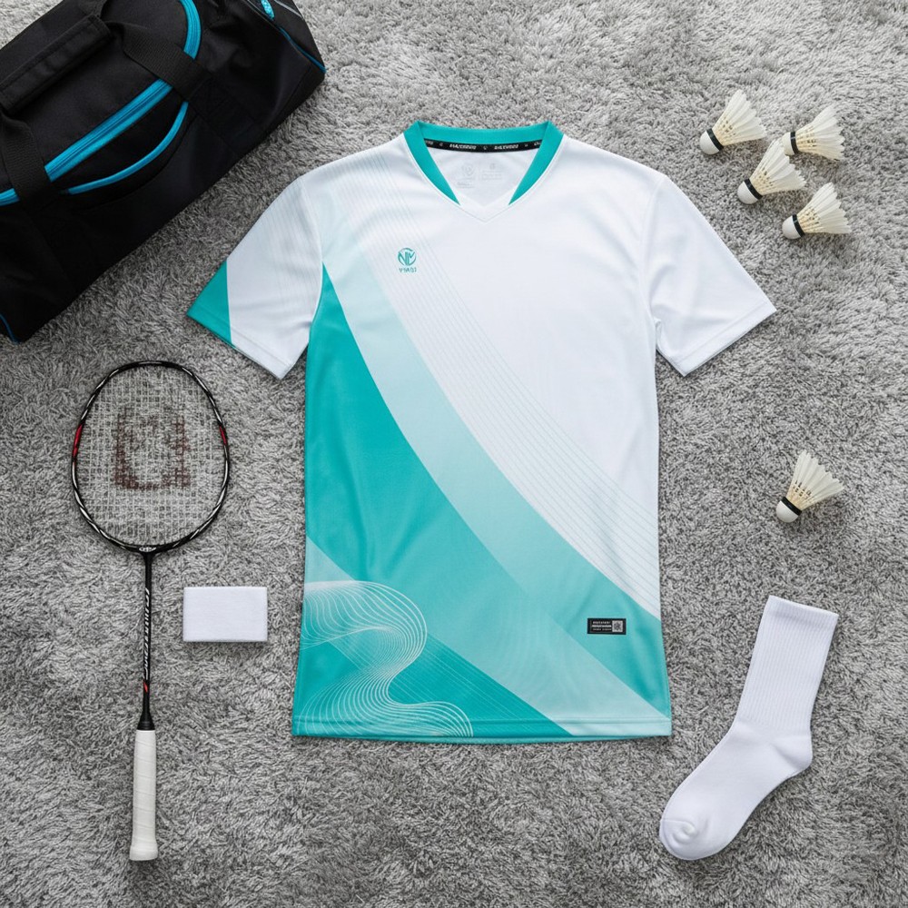 - Họa tiết: Các dải màu chuyển sắc mềm mại tạo cảm giác chuyển động liên tục, phù hợp với tinh thần thể thao cầu lông nhanh – mạnh – chính xác.