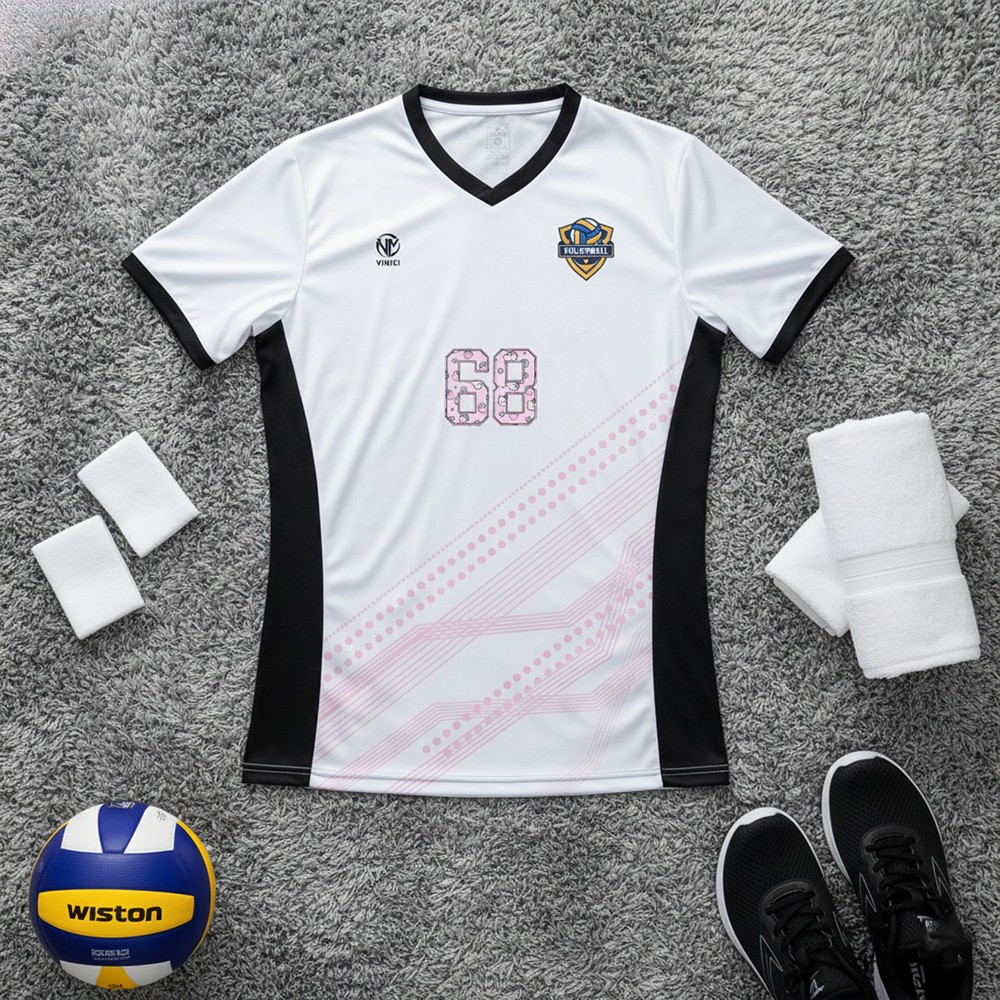 Áo thể thao bóng chuyền BC02-VNC068 gây ấn tượng bởi thiết kế trắng – đen thời thượng, điểm nhấn số 68 viền hồng phá cách, kèm chất liệu thể thao cao cấp giúp bạn tự tin toả sáng trên sân đấu.