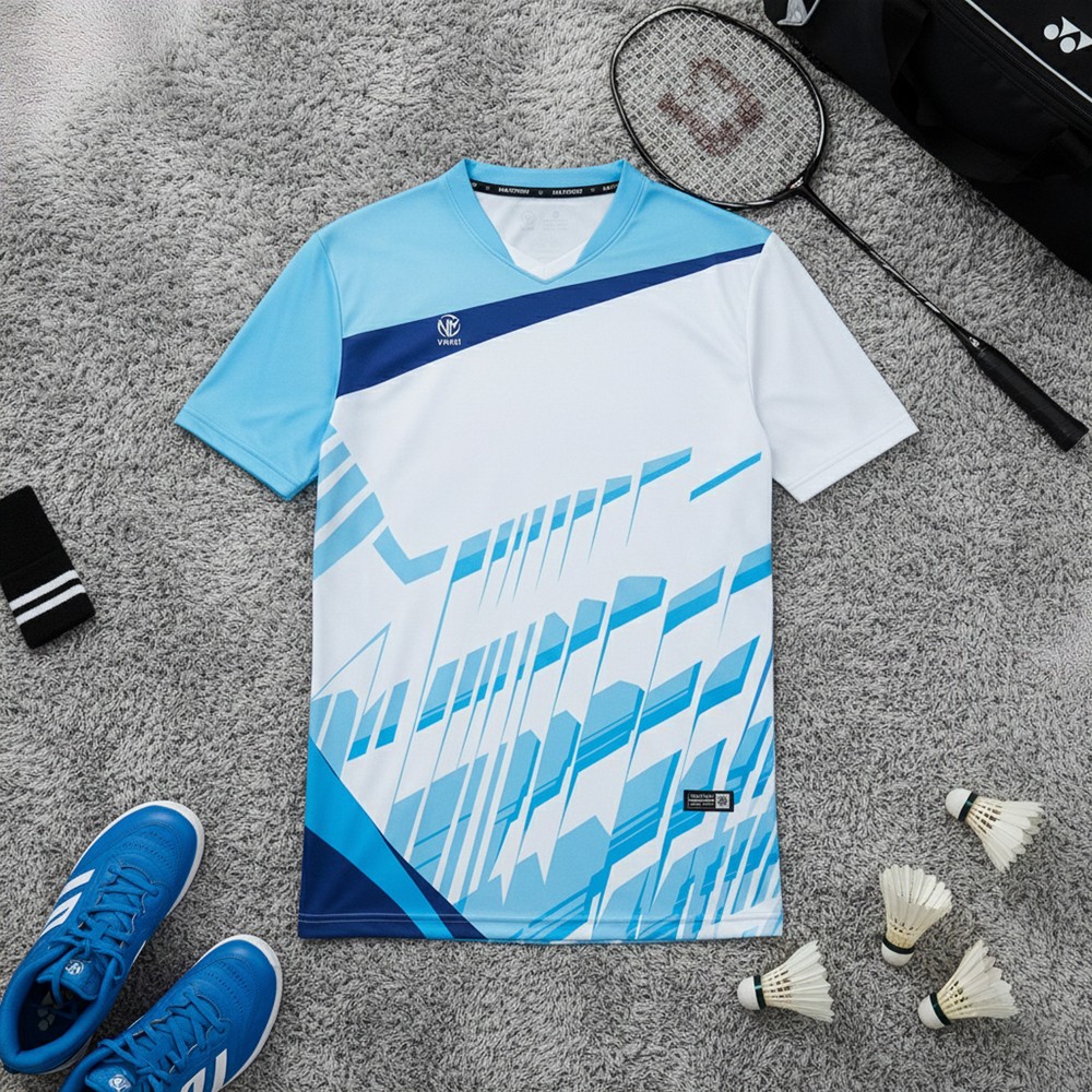 Áo thể thao CL-47 phối màu trắng – xanh năng động, họa tiết trừu tượng mang đậm chất thể thao. Thiết kế unisex và chất liệu vải thể thao cao cấp giúp thấm hút mồ hôi, nhanh khô, đảm bảo thoải mái tối đa khi vận động.