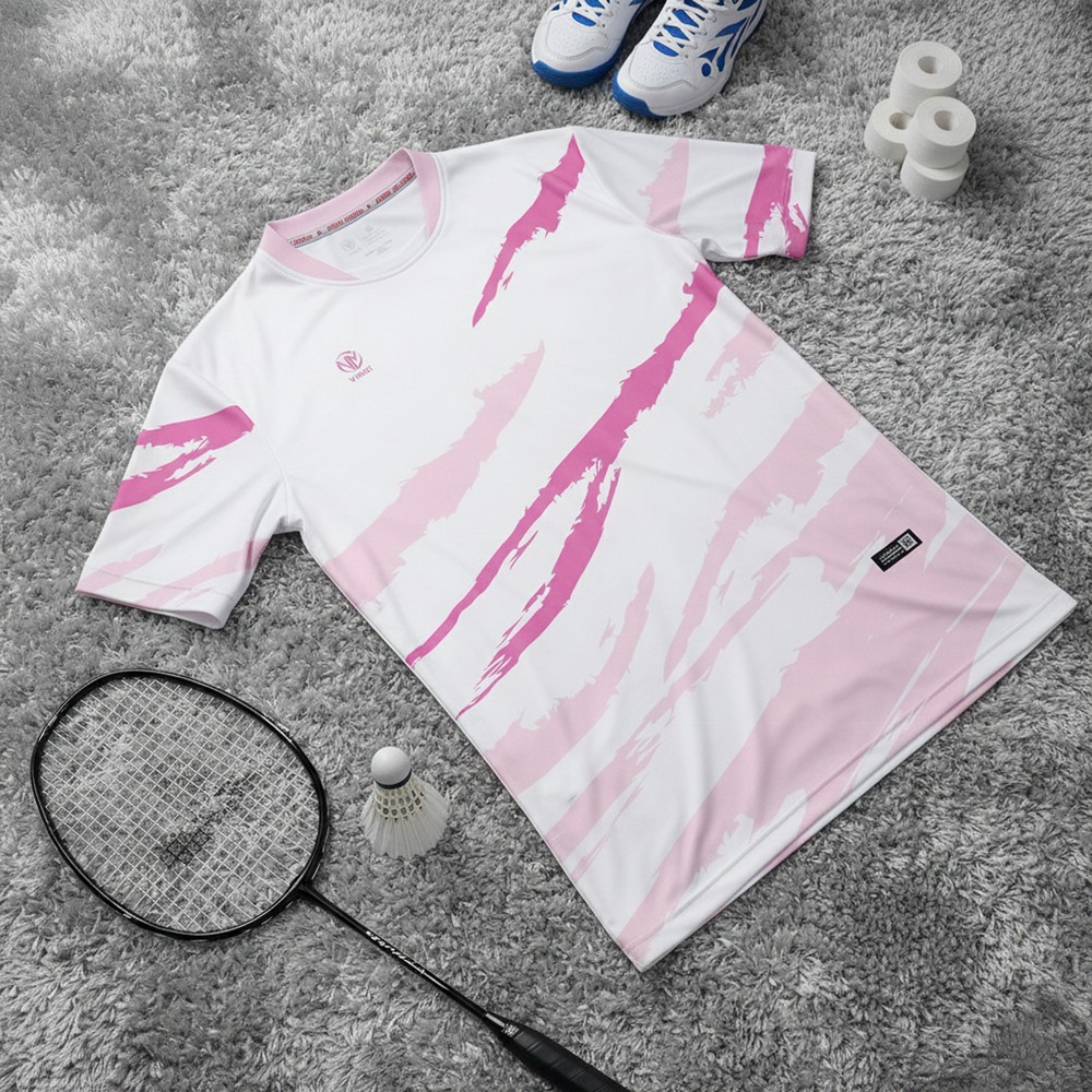 Áo thể thao nữ CL-50 màu trắng phối hồng pastel năng động và thấm hút nhanh