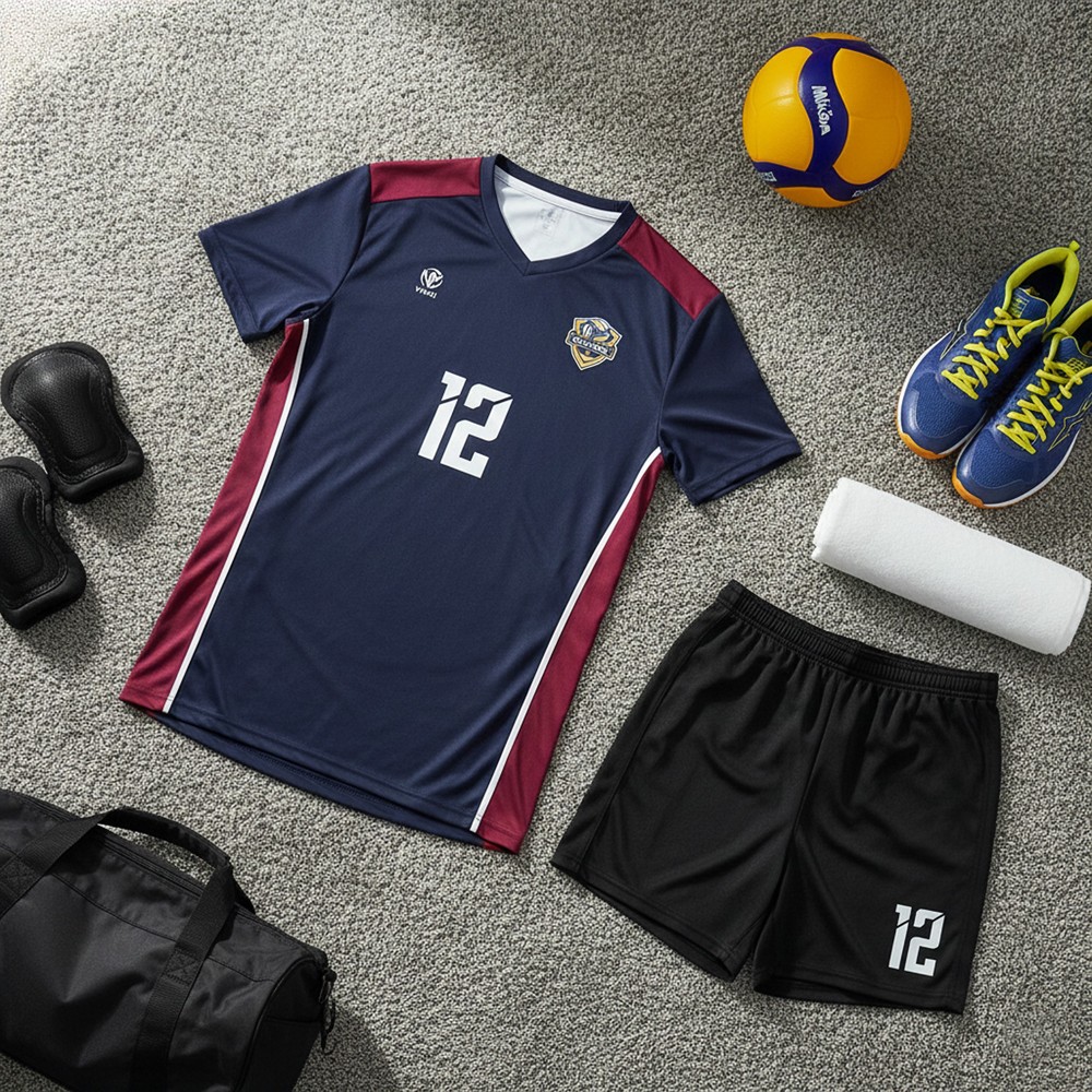 Bộ quần áo thể thao màu xanh navy phối đỏ bordeaux – thiết kế unisex hiện đại, chất liệu thể thao cao cấp, thoáng khí vượt trội, phù hợp cho mọi hoạt động vận động.