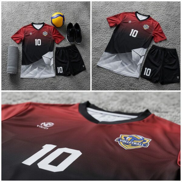 Đồng phục bóng chuyền nam BC02 VNC068 phối màu đỏ đen cá tính, chất liệu co giãn thoáng mát, thiết kế thể thao giúp vận động linh hoạt và nổi bật trên sân đấu.